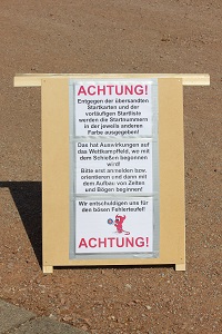 Bitte beachtet für morgen: auf Euer Startkarte steht die Gruppe und eine Farbe (weiß oder gelb) ist vermerkt. Uns ist ein Fehler unterlaufen. Es ist tatsächlich genau anders herum. Die Sportler mit den ursprünglich weißen Startnummern erhalten dann gelbe und umgekehrt. Mit der ausgegebenen Startnummer orientiert ihr Euch bitte. So wie es auf unserer Homepage und im Infoheft sowie auf den Wegweisern vor Ort drauf steht ist es dann richtig. Wo gehobelt wird, da fallen Späne…