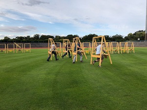 Ruhe vor dem Sturm? Kennen wir nicht. 😉 Drei DMs in gut sechs Jahren (2012, 2015, 2018), da sind wir schon deutlich ruhiger geworden. Man möchte meinen, wir können den Ablauf der DM dieses Mal viel mehr genießen. Doch vorher kommt noch jede Menge Arbeit auf uns zu. Ab morgen früh um 08:00 Uhr beginnen für unsere Helfer die straff organisierten Vorbereitungen. Vom Transport der Scheiben ins Stadion über die Befestigung der Wegweiser bis hin zur letzten Absprache von Details wird morgen unser Tagesprogramm füllen.