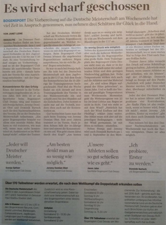 Über unsere drei jugendlichen Teilnehmer Svenja, Dominik und Jeremy war heute schon ein toller Bericht in der Mitteldeutschen Zeitung zu lesen. Wir wünschen unseren dreien viel Erfolg und „alles ins Gold“!